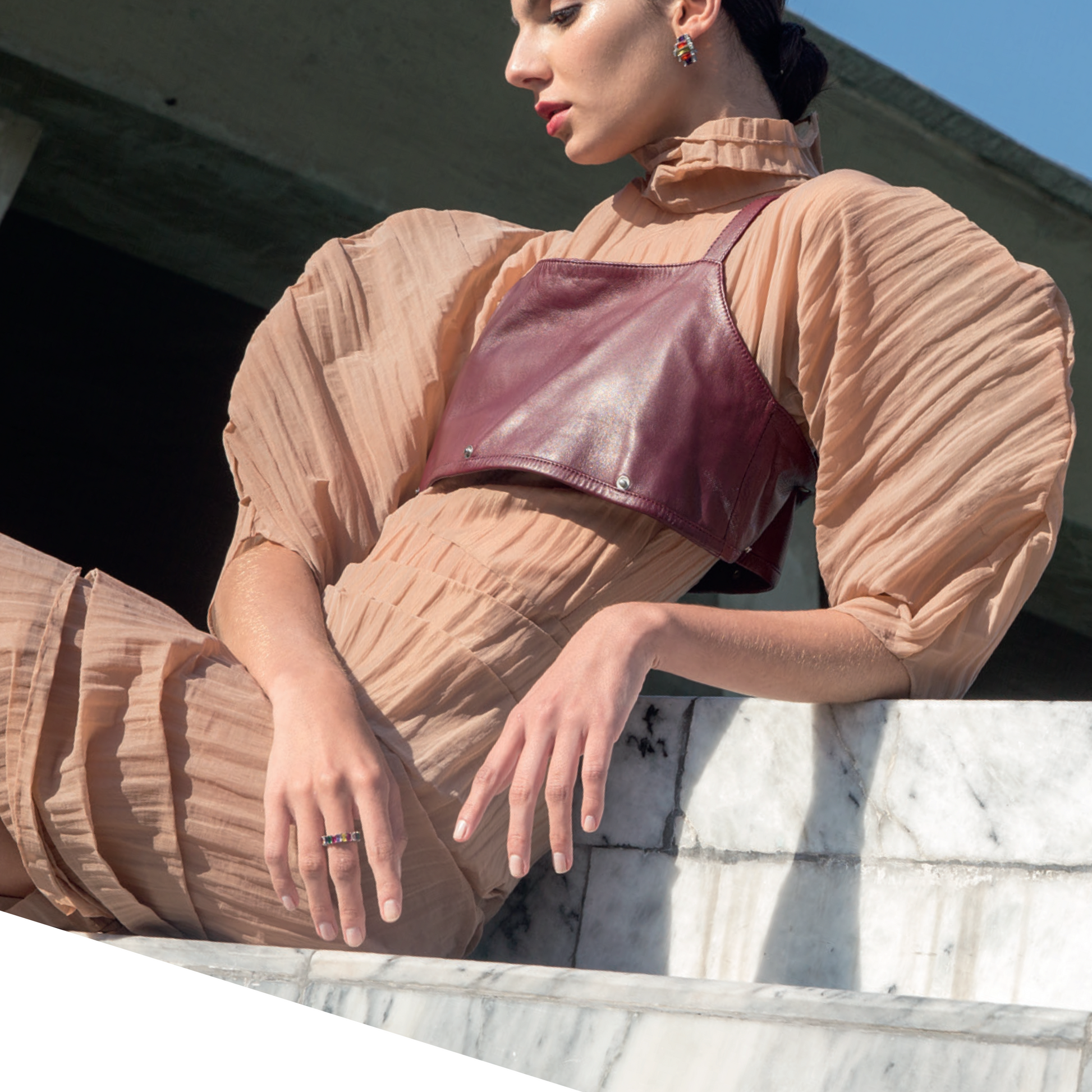 Sugerimos guardar la pieza individualmente en su empaque, abrir y cerrar con delicadeza, las piezas deben limpiarse frecuentemente con una tela de gamuza para mantener su acabado original. Asegúrese de mantener su piel tan limpia y libre de aceite como sea posible. Recomendamos usar la pieza una vez que se haya aplicado productos como maquillaje, perfume, lociones para el cuerpo y spray para el cabello, ya que estos contienen químicos que pueden dañar la pieza. Además de los cuidados anteriores, los zirconia atraen la grasa y son opacados por el residuo de jabón, sugerimos retirarlas cada vez que se lave las manos.