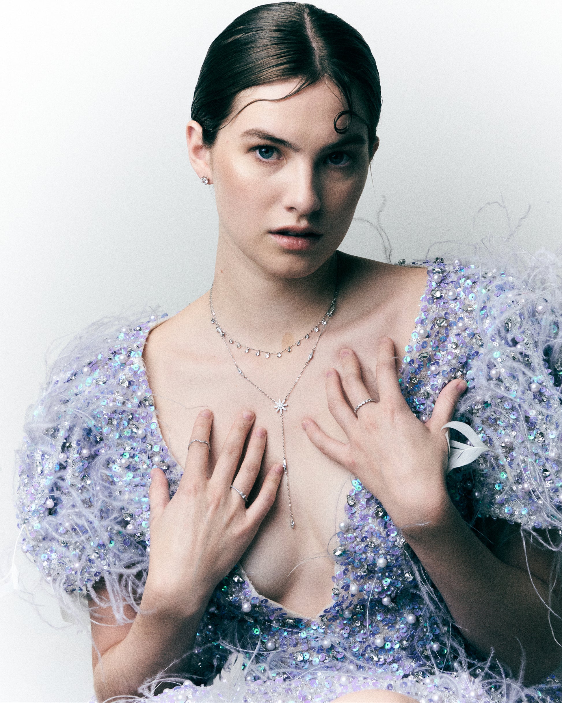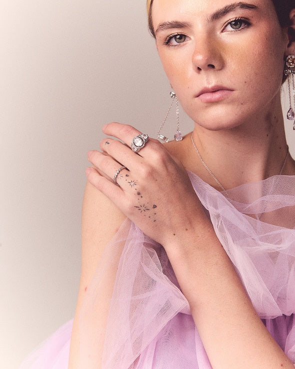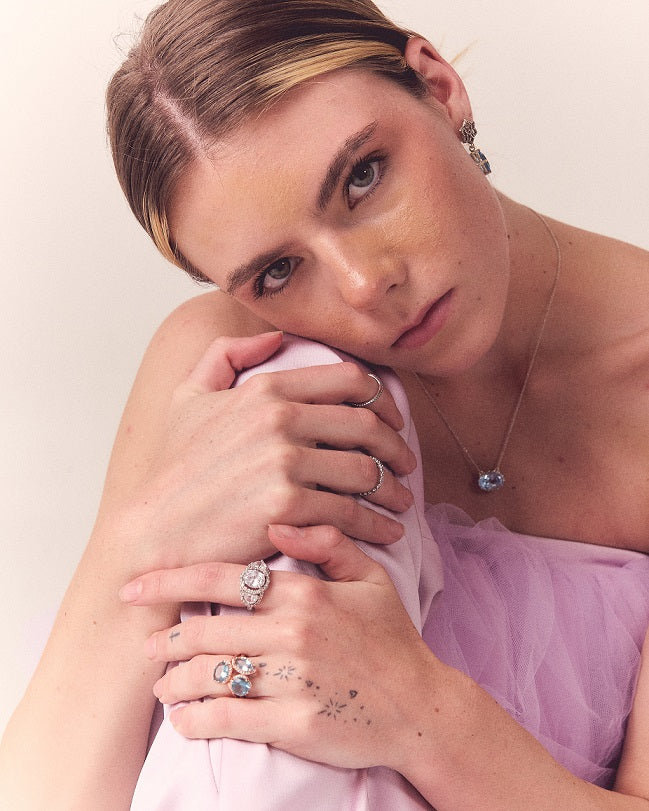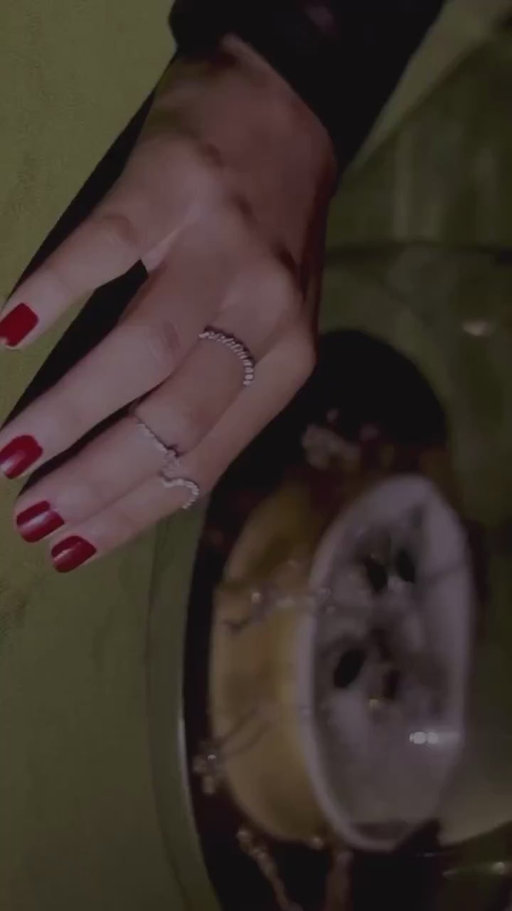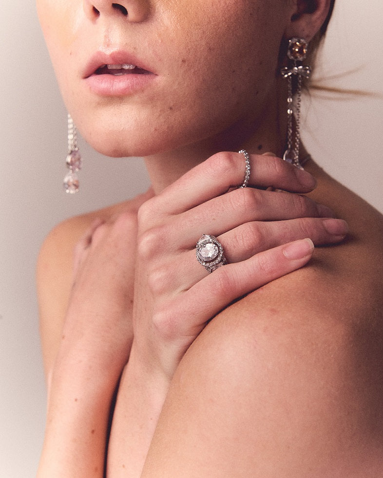 Sugerimos guardar la pieza individualmente en su empaque, abrir y cerrar con delicadeza, las piezas deben limpiarse frecuentemente con una tela de gamuza para mantener su acabado original. Asegúrese de mantener su piel tan limpia y libre de aceite como sea posible. Recomendamos usar la pieza una vez que se haya aplicado productos como maquillaje, perfume, lociones para el cuerpo y spray para el cabello, ya que estos contienen químicos que pueden dañar la pieza. Además de los cuidados anteriores, los zirconia atraen la grasa y son opacados por el residuo de jabón, sugerimos retirarlas cada vez que se lave las manos.